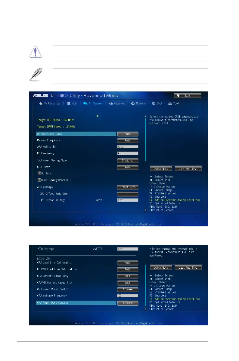 Be cautious when changing the settings of the Ai Tweaker menu items. Incorrect eld