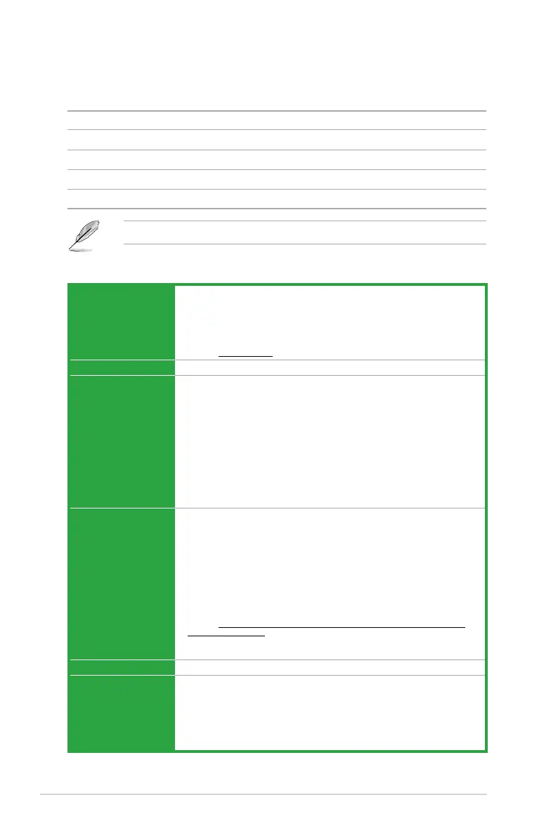 • Refer to www.asus.com for the latest Memory QVL (Qualied Vendors List).