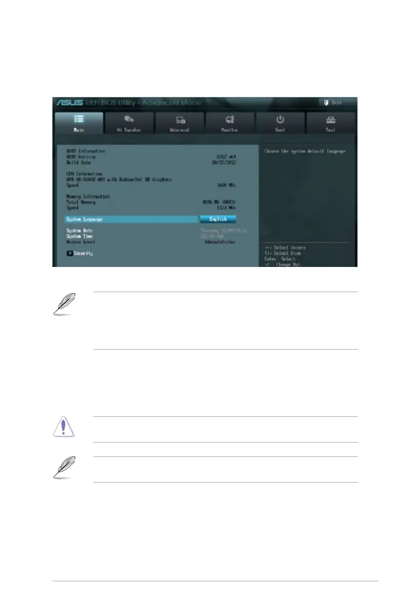 The Main menu screen appears when you enter the Advanced Mode of the BIOS Setup