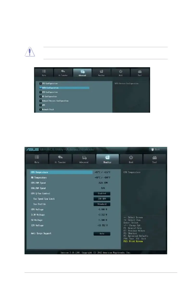 Asus A55M-E - BIOS Advanced and Monitor Menus; Advanced Menu Options; Monitor Menu Features