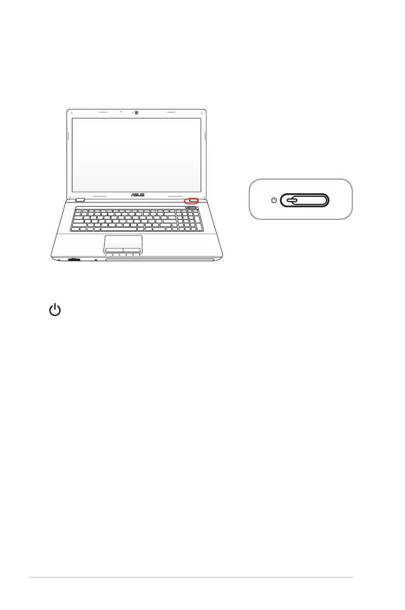 The power switch turns ON and OFF the Notebook PC or putting
