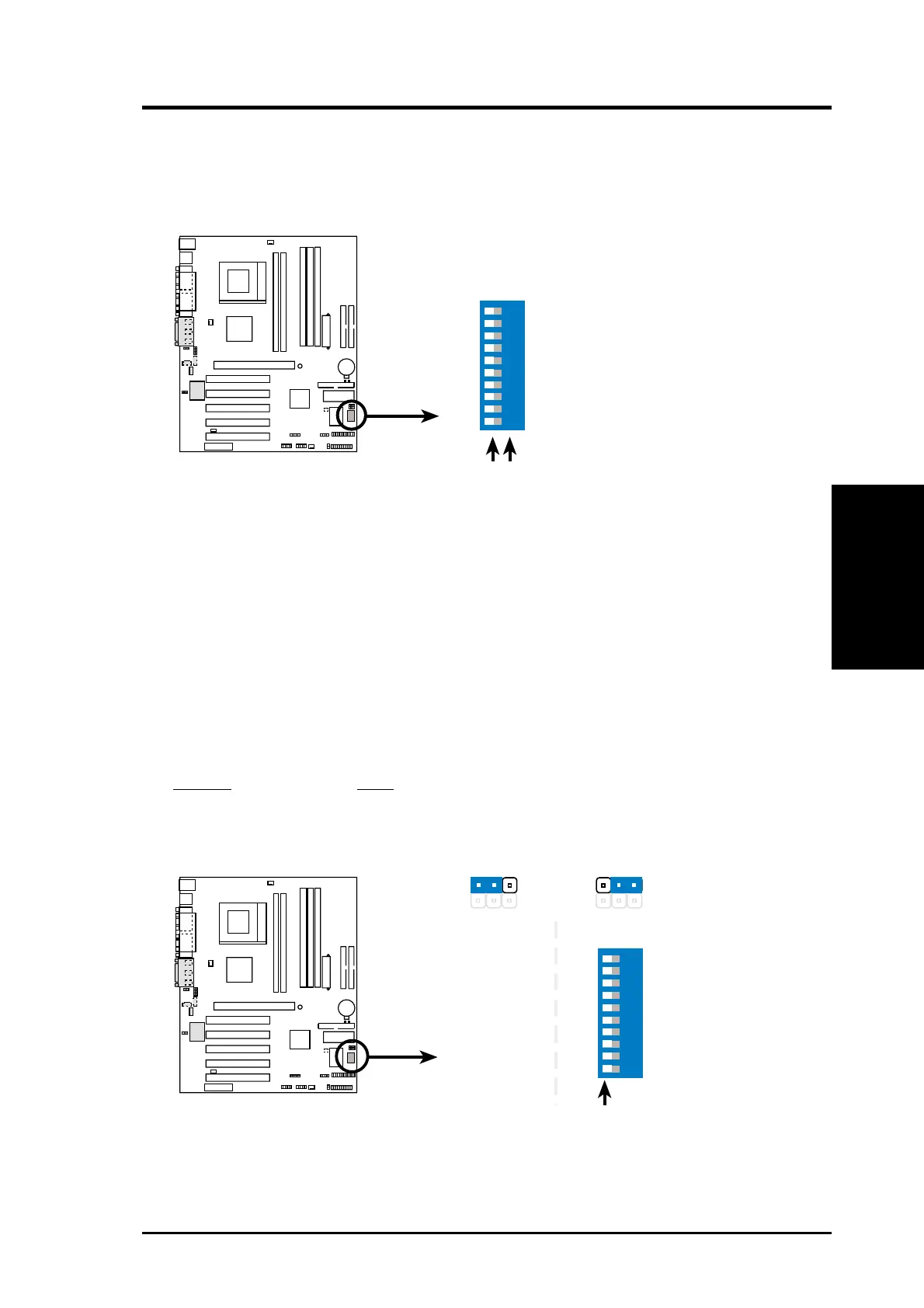 The motherboard’s onboard functions are adjusted through the DIP switches. The