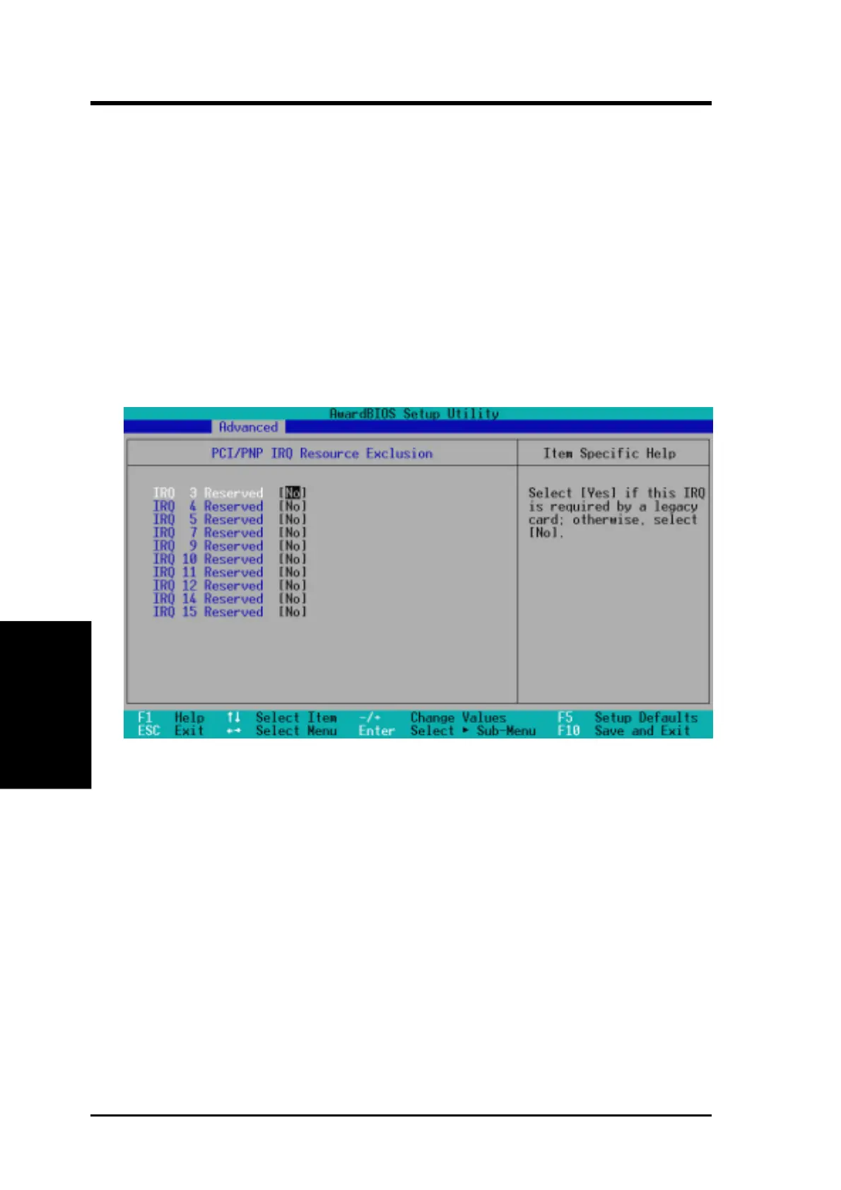 PCI/PNP IRQ Resource Exclusion