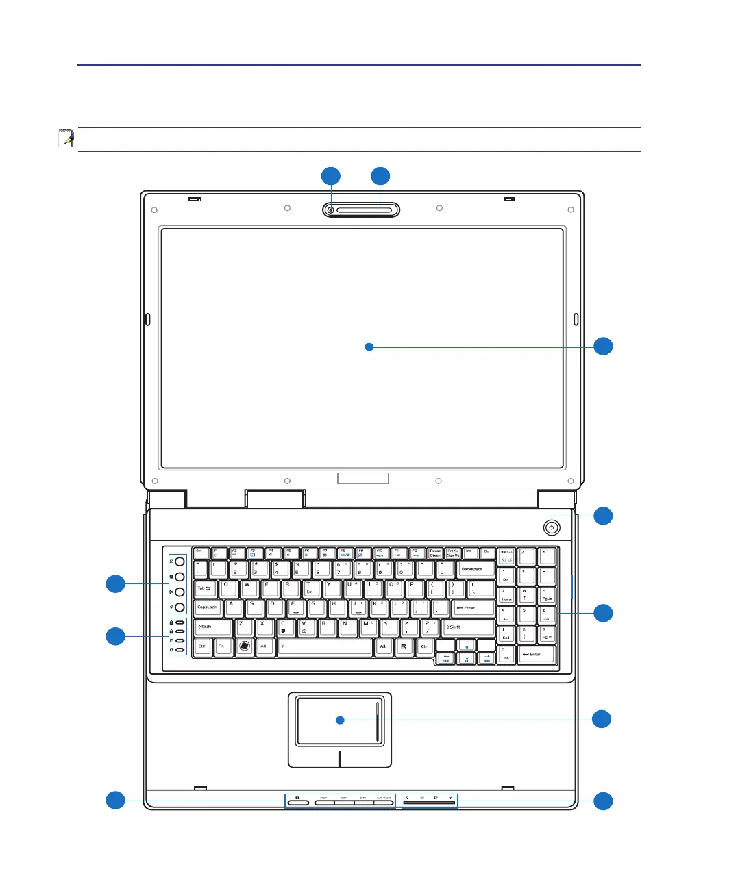 Refer to the diagram below to identify the components on this side of the Notebook PC.