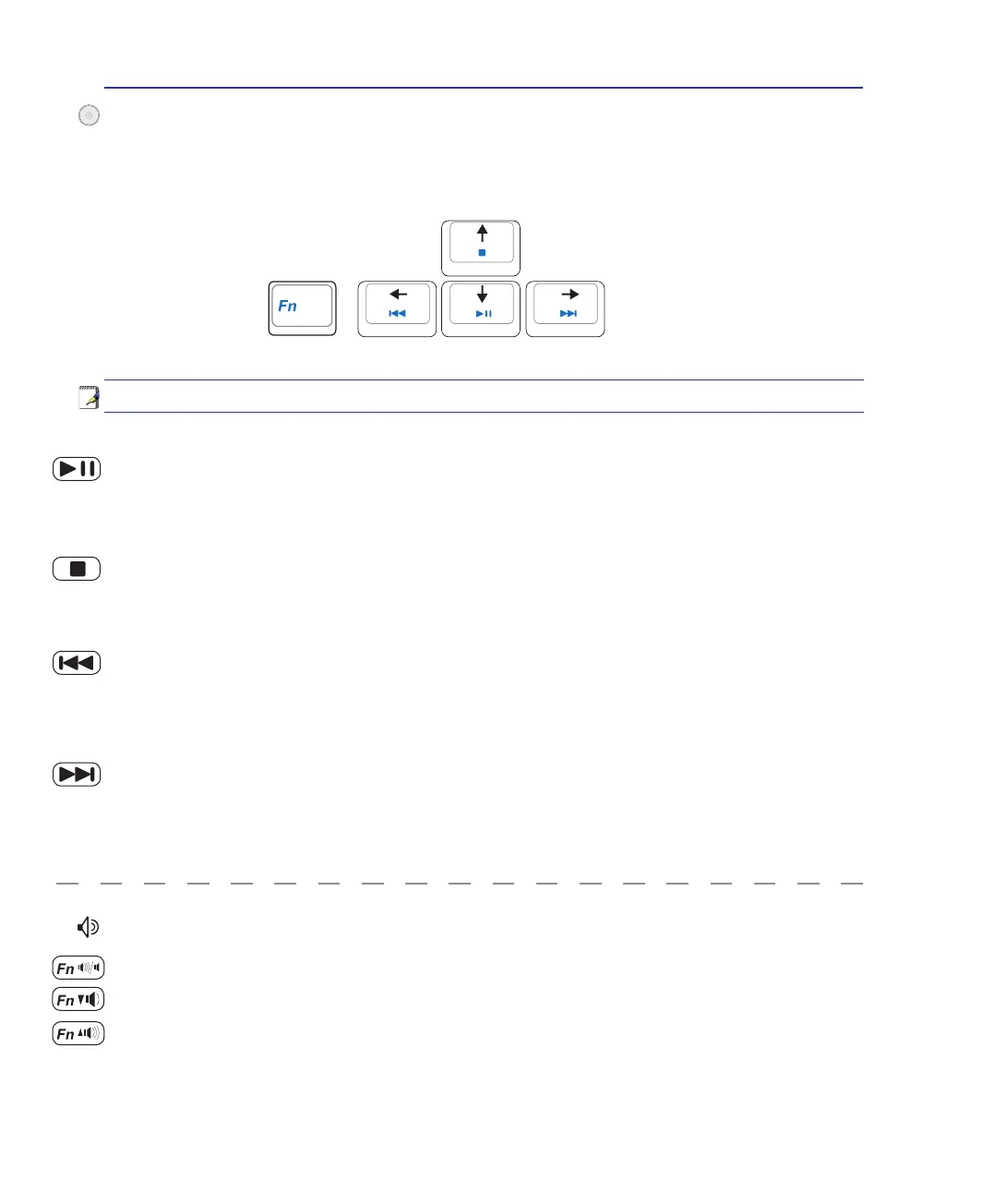 lowing denes the meaning of each multimedia control key on the Notebook PC.