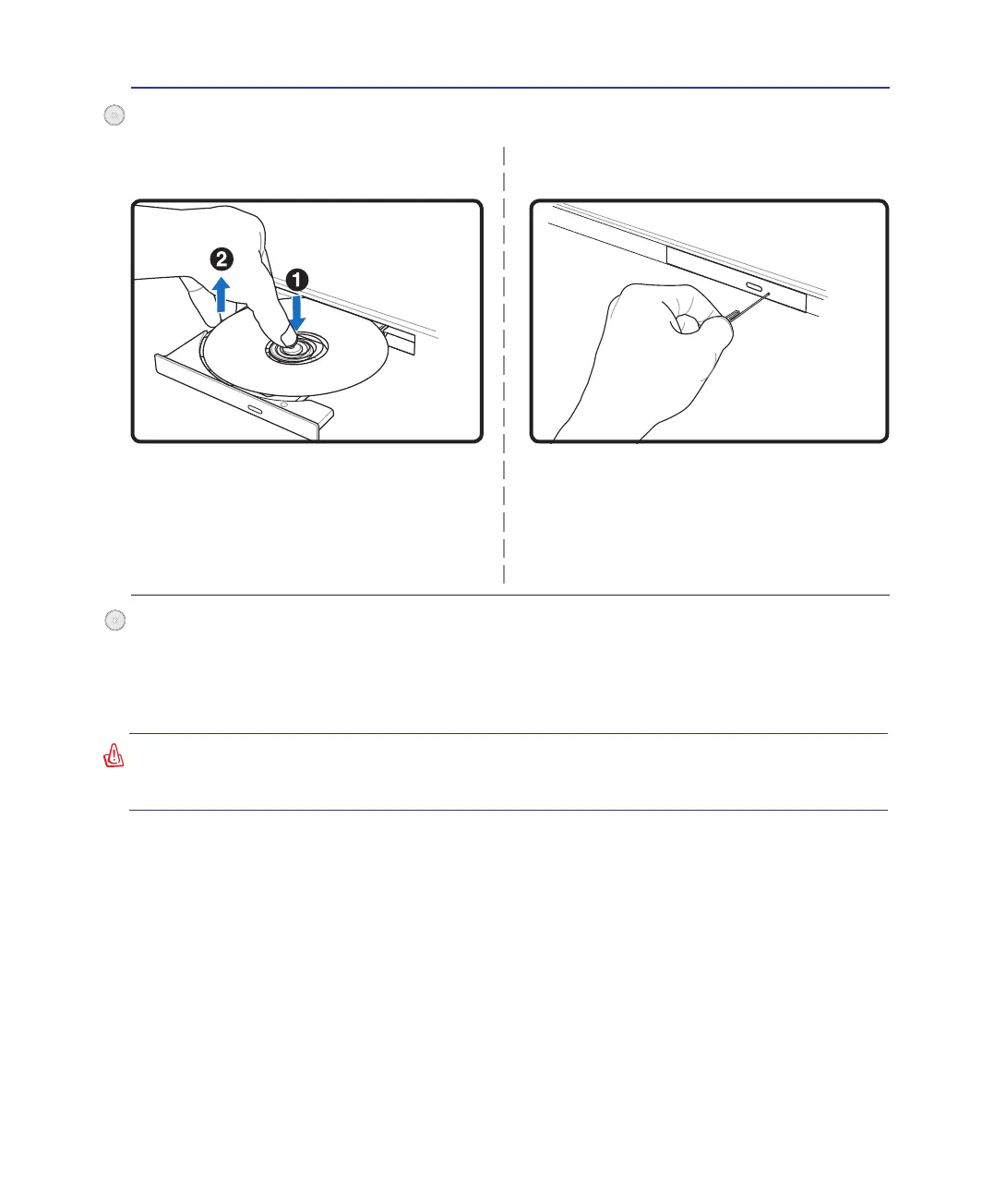 the Notebook PC uses a hub to hold the CD in place regardless of the angle. When inserting a CD, it is