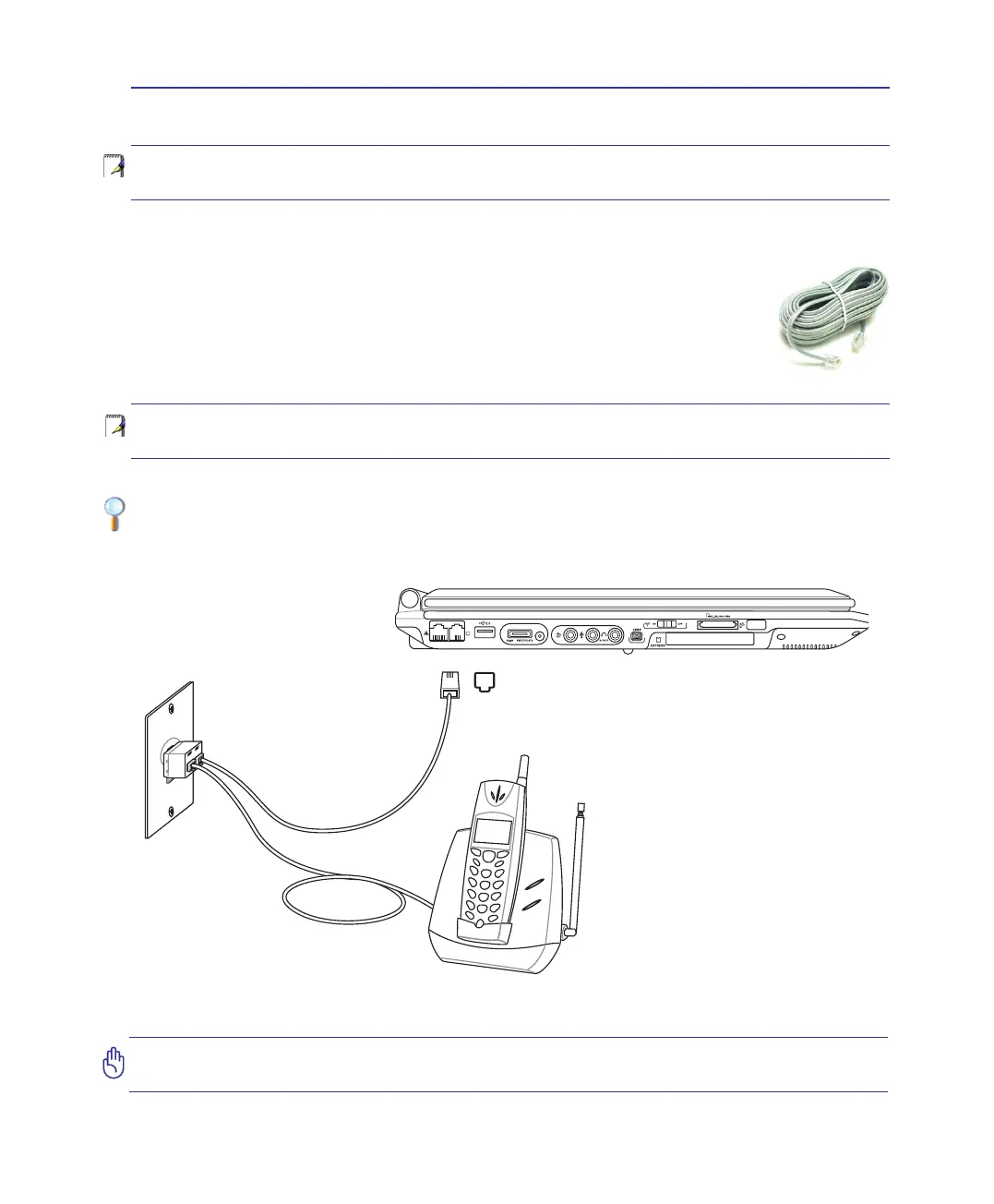 The telephone wire used to connect the Notebook PC’s internal modem should have