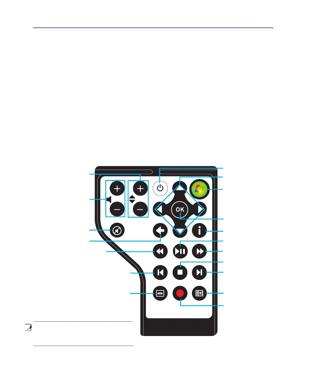 receiver or DVD player. A Media Center remote control includes the following features: