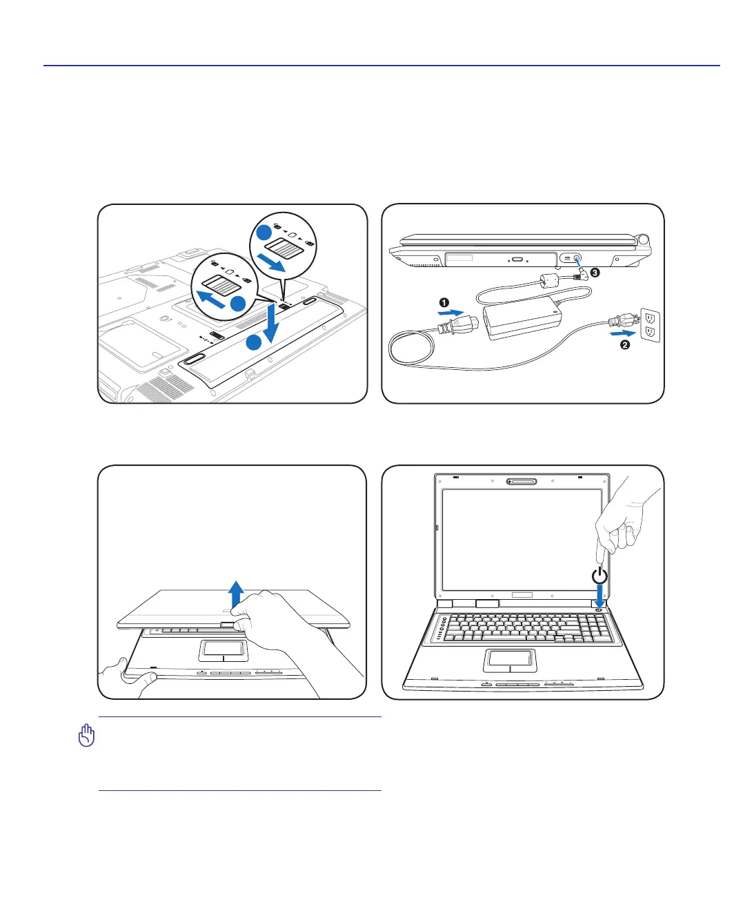 3. Open the Display Panel 4. Turn ON the Notebook PC