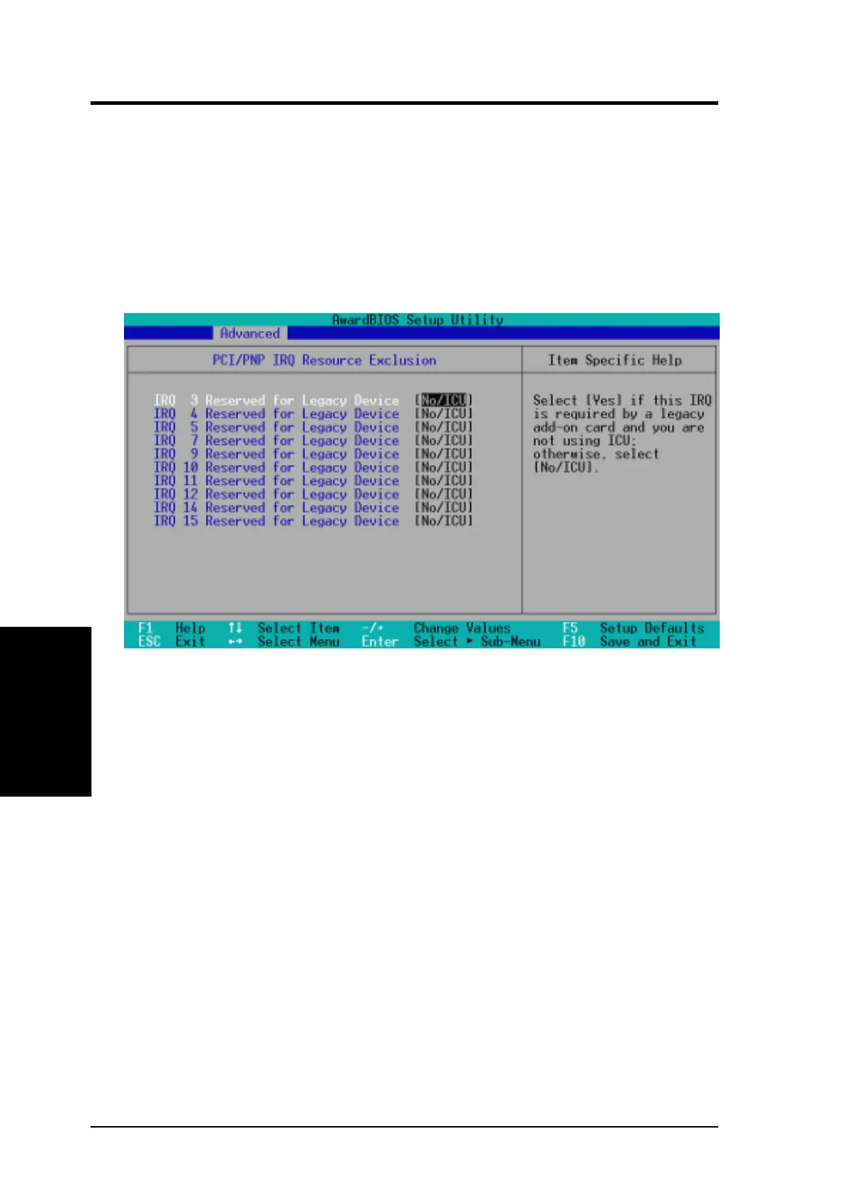 PCI/PNP IRQ Resource Exclusion