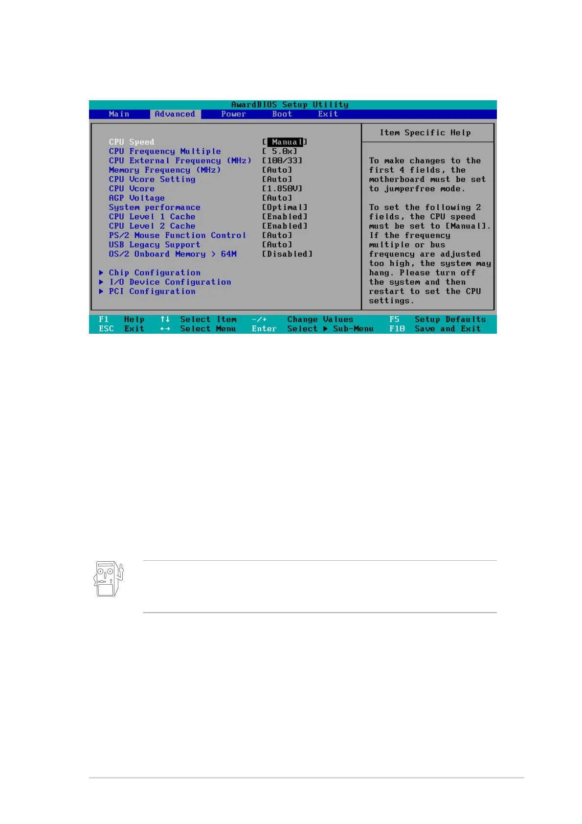 to select the internal frequency of the CPU. Select [Manual] if you want to