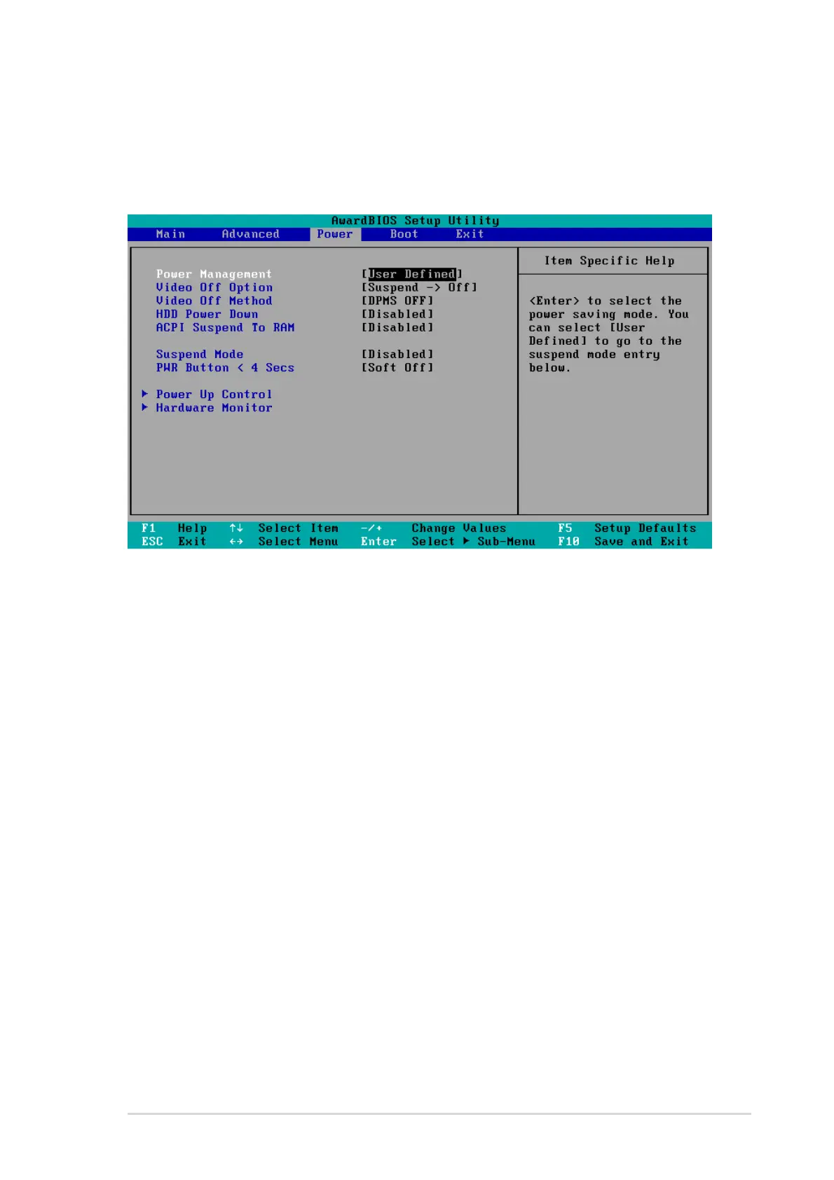 power management. Configuration options: [Always On] [Suspend -> Off]