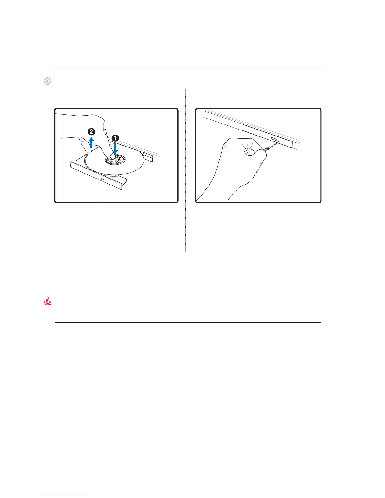 the Notebook PC uses a hub to hold the CD in place regardless of the angle. When inserting a CD, it is