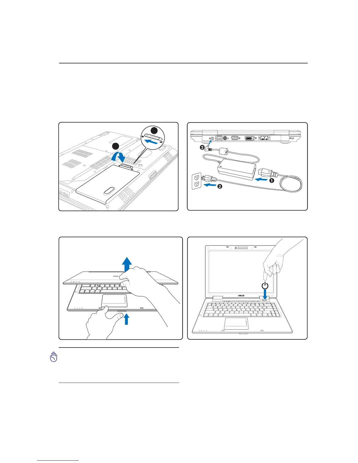 3. Open the Display Panel 4. Turn ON the Notebook PC