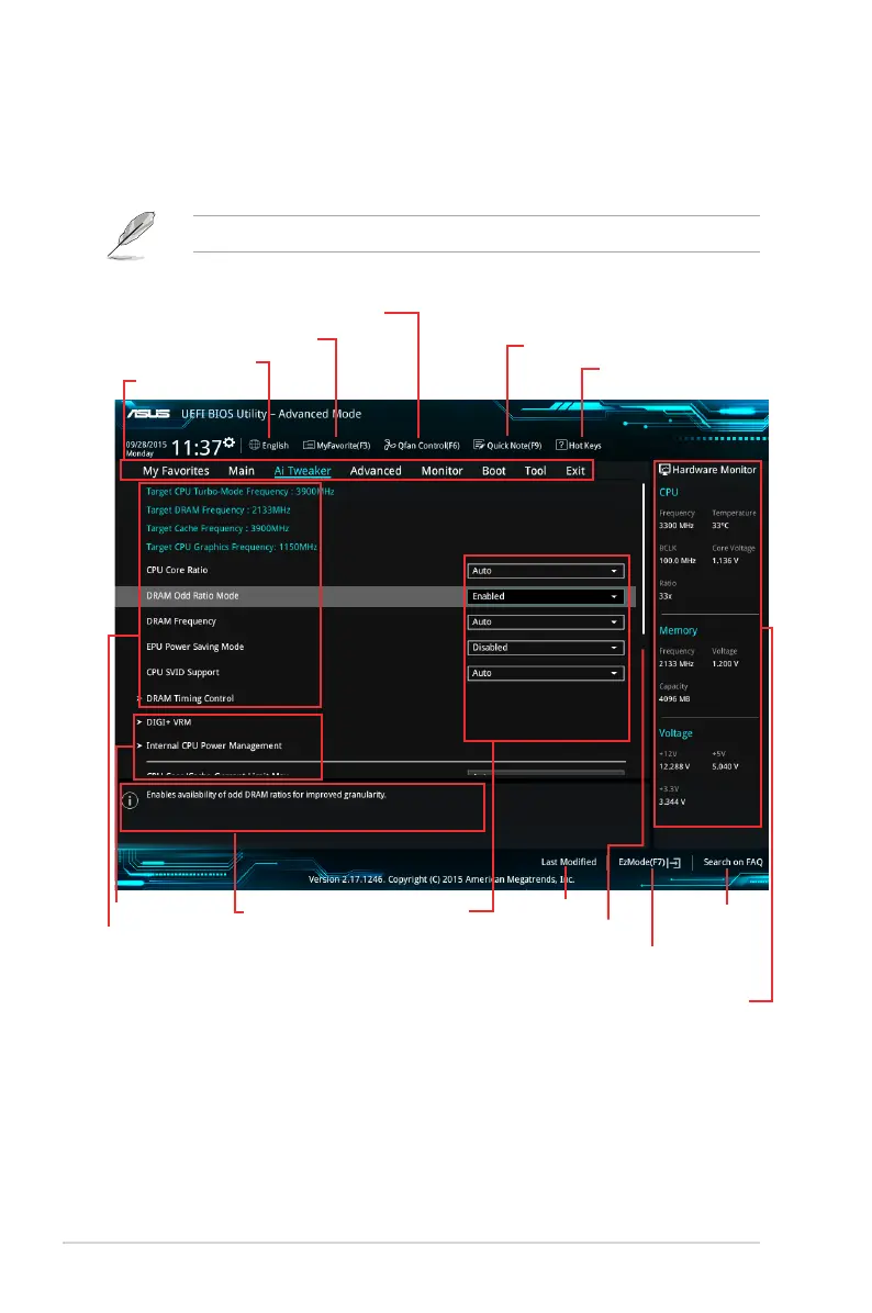 BIOS settings. The gure below shows an example of the Advanced Mode. Refer to the
