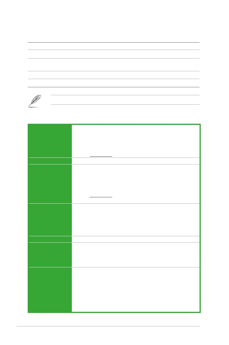 ** Refer to www.asus.com for the Memory QVL (Qualied Vendors List).
