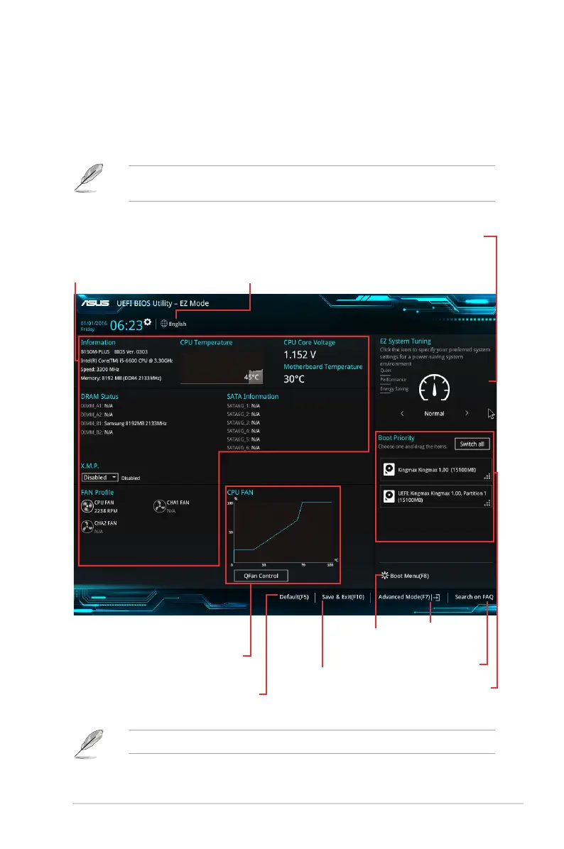 By default, the EZ Mode screen appears when you enter the BIOS setup program. The EZ
