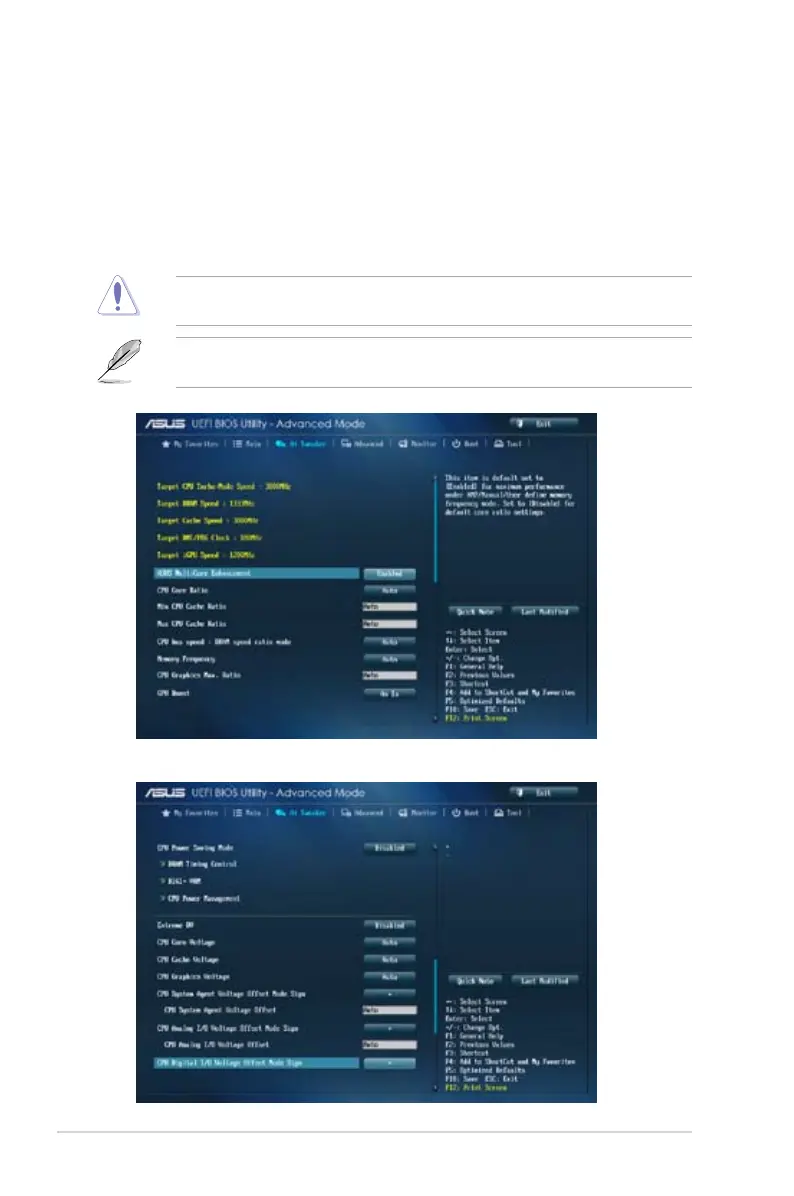 Be cautious when changing the settings of the Ai Tweaker menu items. Incorrect eld