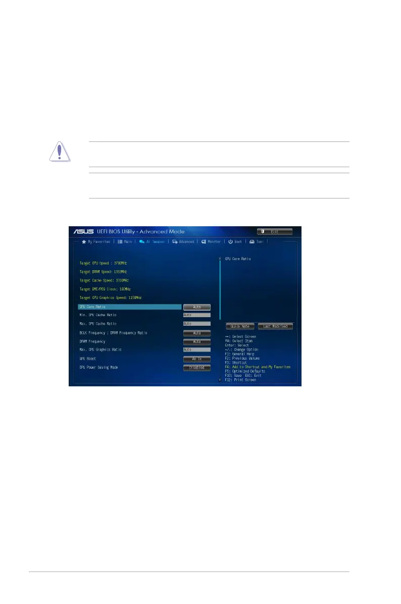 The Ai Tweaker menu items allow you to congure overclocking‑related items.