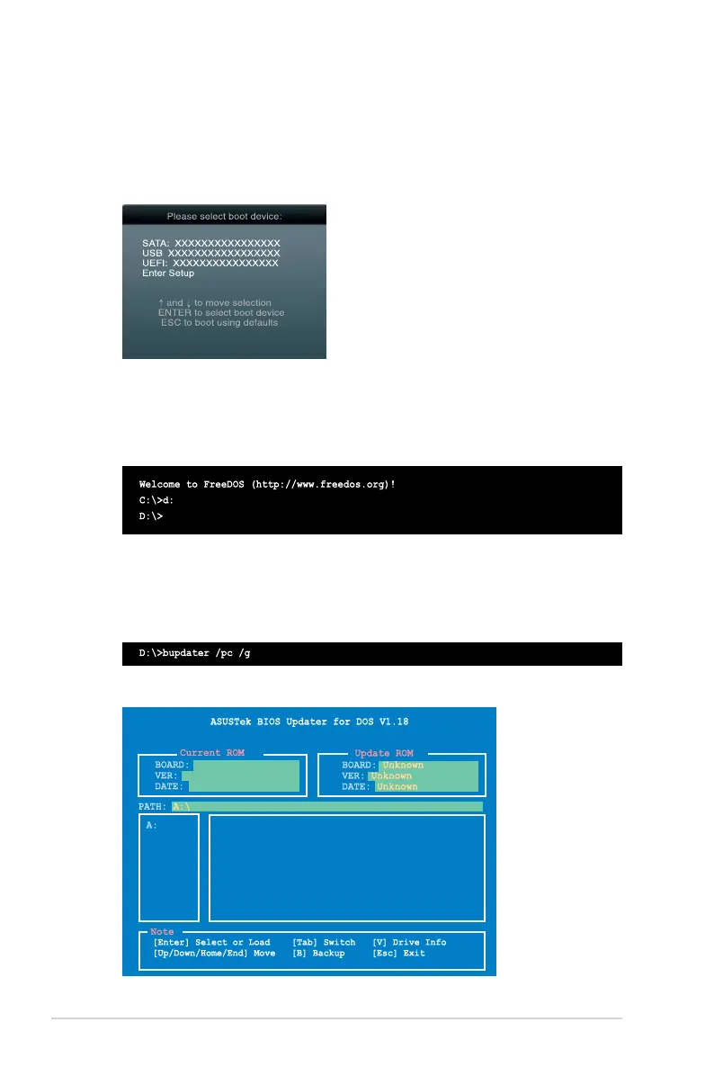 4. At the FreeDOS prompt, type d: and press <Enter> to switch the disk from Drive C