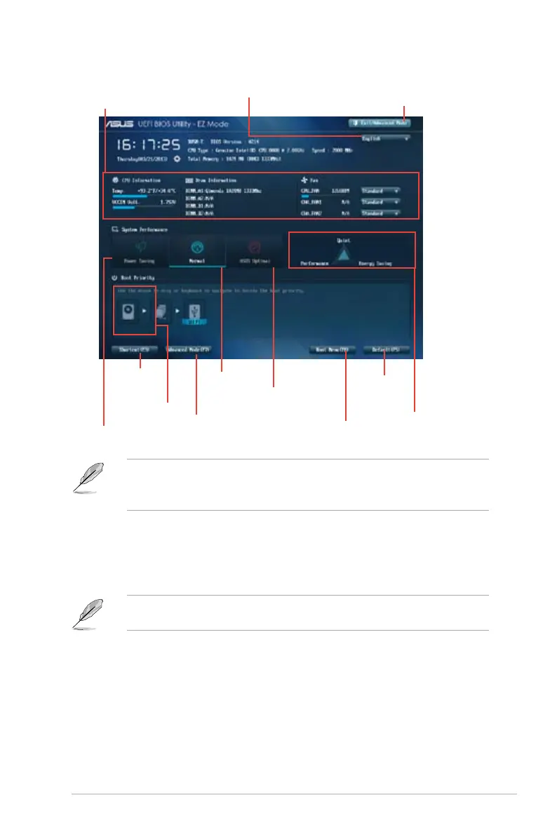 Asus B85M-E - UEFI BIOS Setup (Continued); EZ Mode Interface and Functions; Advanced Mode Interface Overview