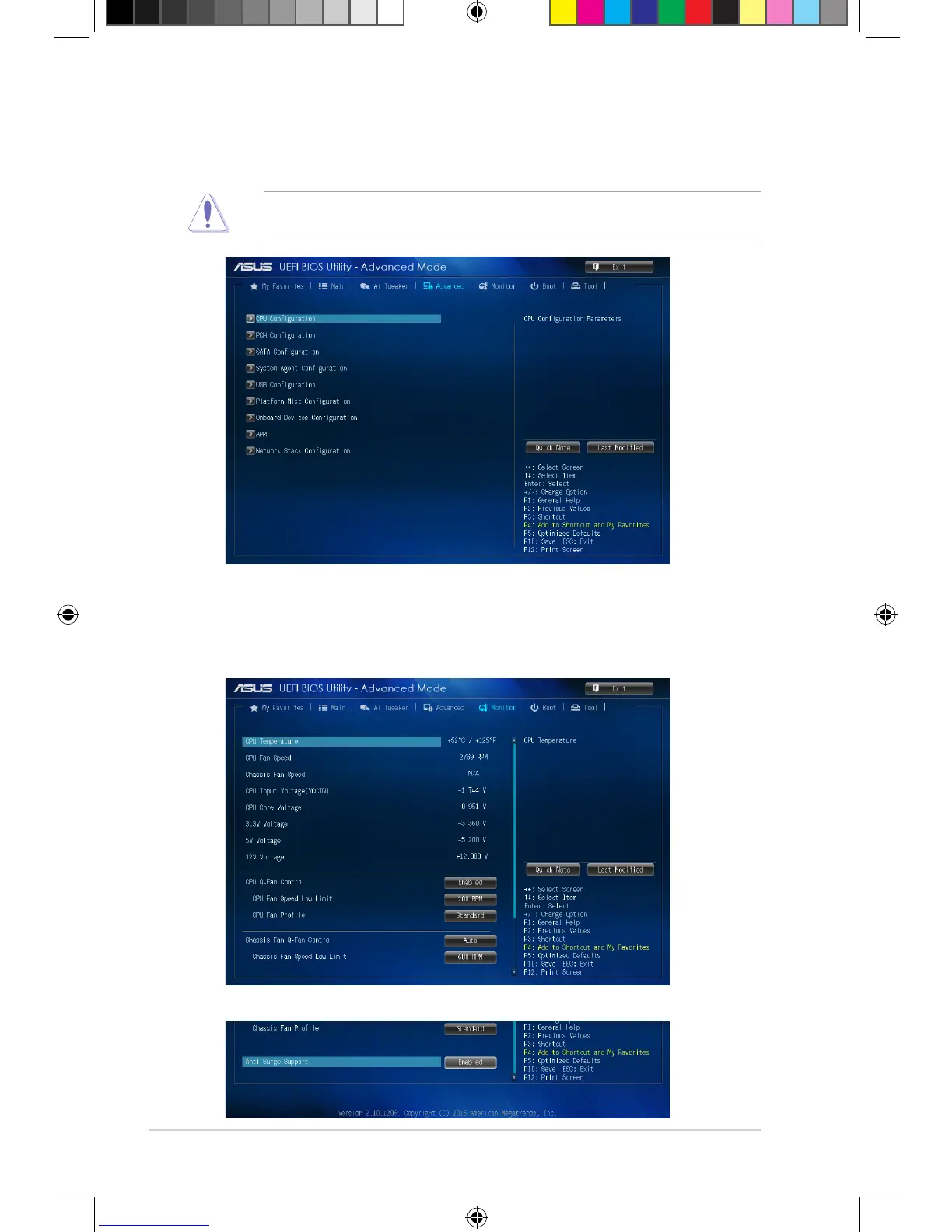 Be cautious when changing the settings of the Advanced menu items. Incorrect eld values