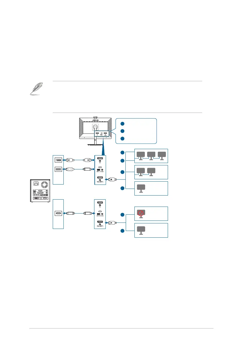 The monitor supports daisy chain on DisplayPort. Daisy Chaining allows up to 4
