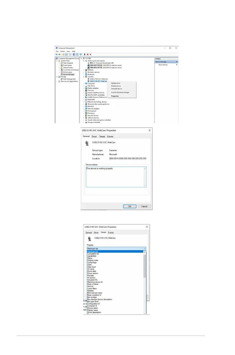 Right-click USB2.0 HD UVC WebCam, and click Properties to open the