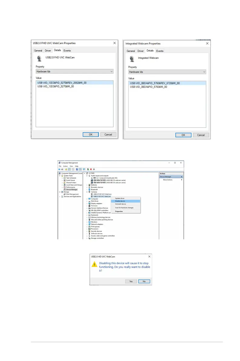 For BE/C6 webcam series, the monitor webcam hardware ids will show as below: