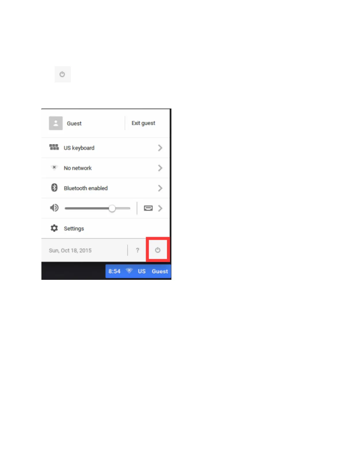 Step 1: Please click in the bottom right hand-corner to open the menu (where the shutdown