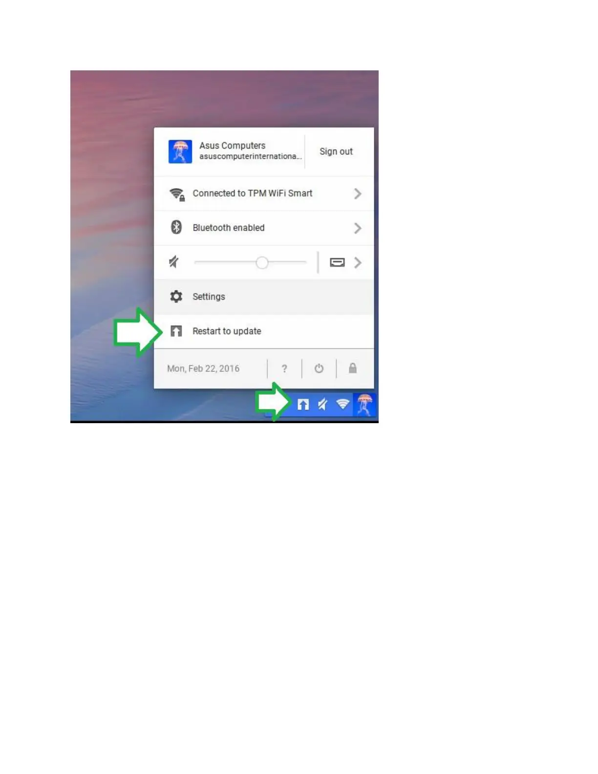 of the screen, click on 'Settings', and choose 'About Chrome OS' at the top of the settings