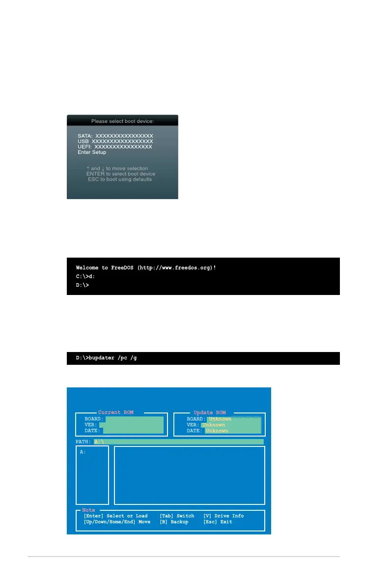 4. At the FreeDOS prompt, type d: and press <Enter> to switch the disk from Drive C