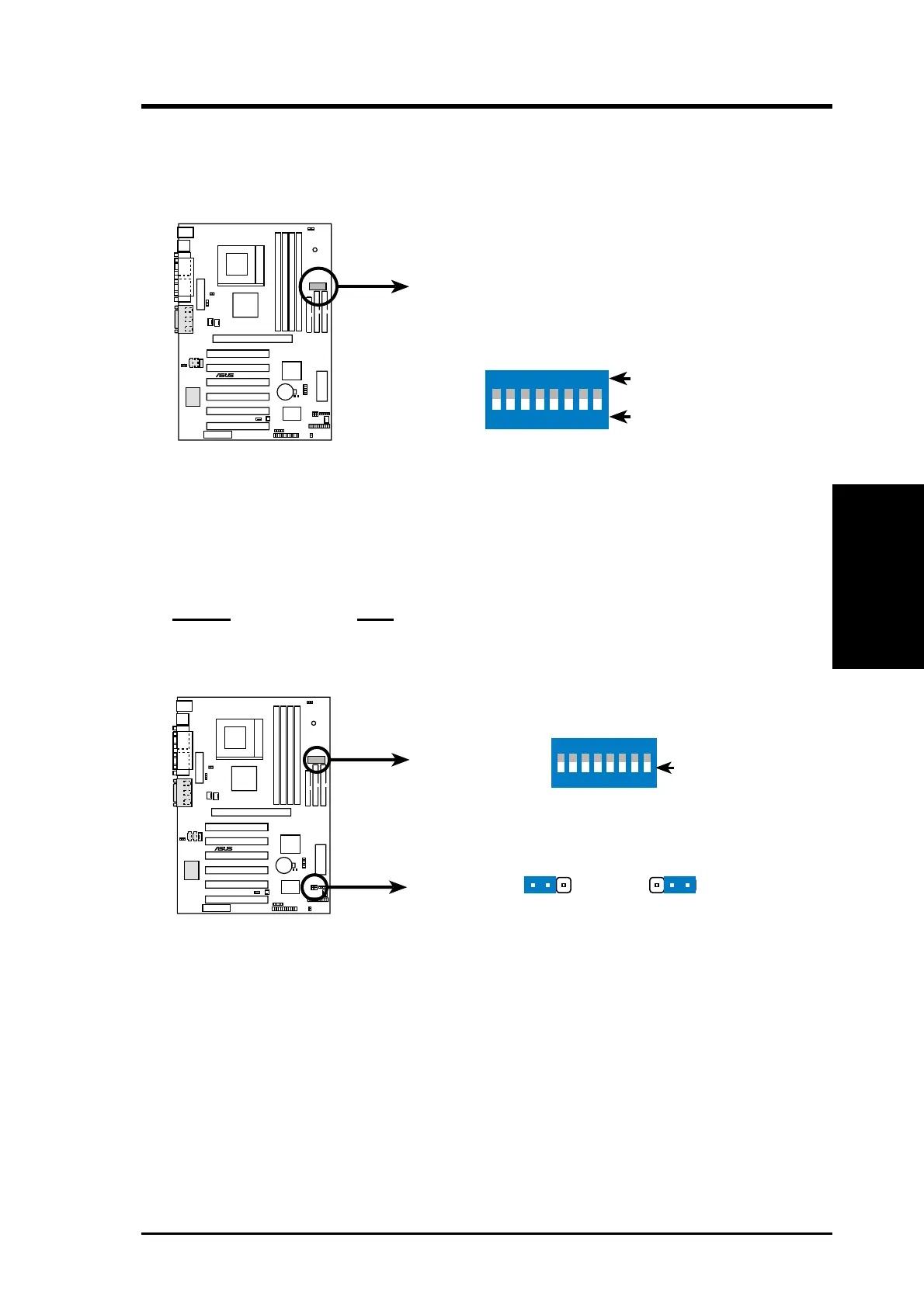 The motherboard frequency is adjusted through the DIP switches. The white block