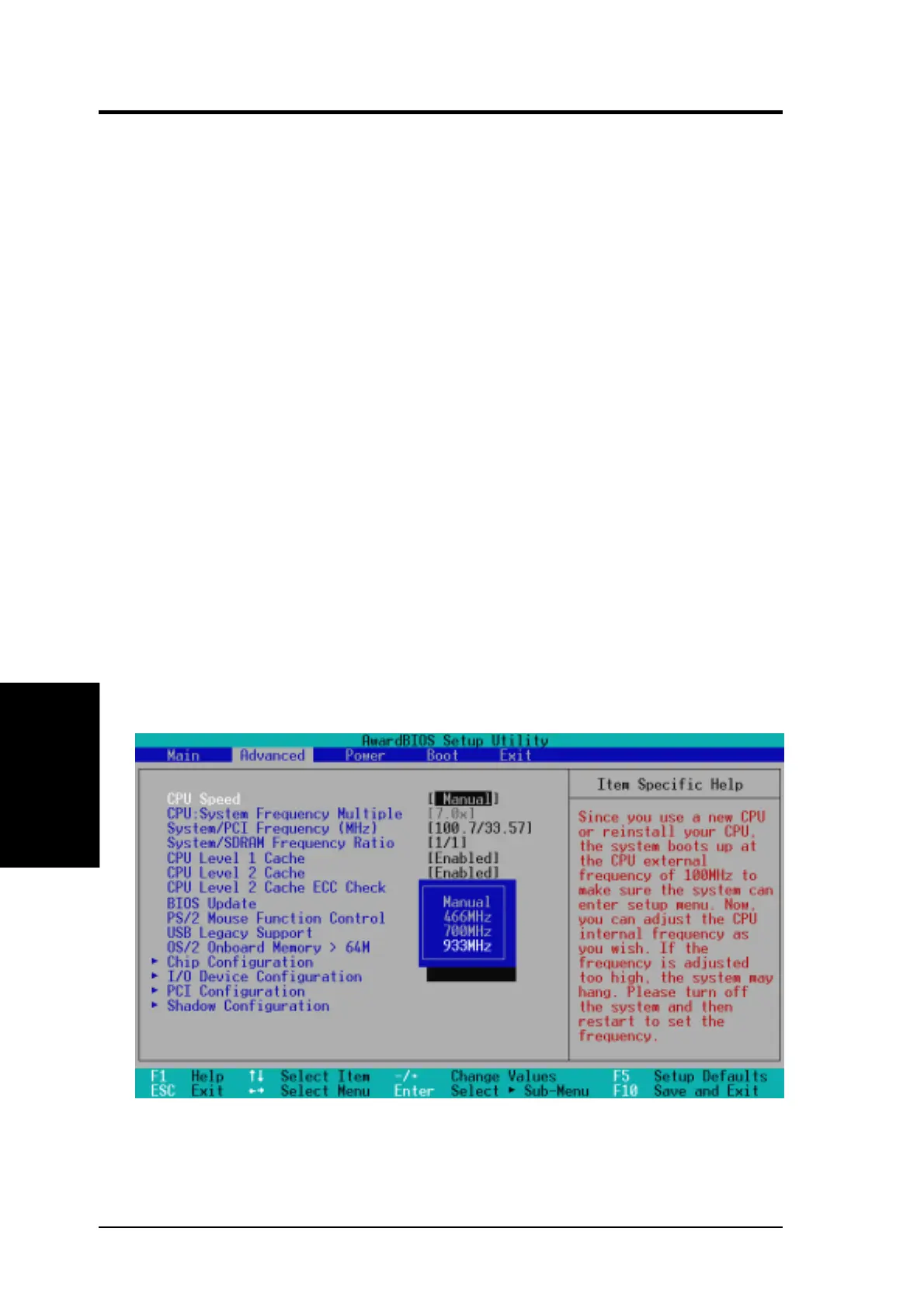 to the Advanced menu with a popup menu of all the possible CPU internal
