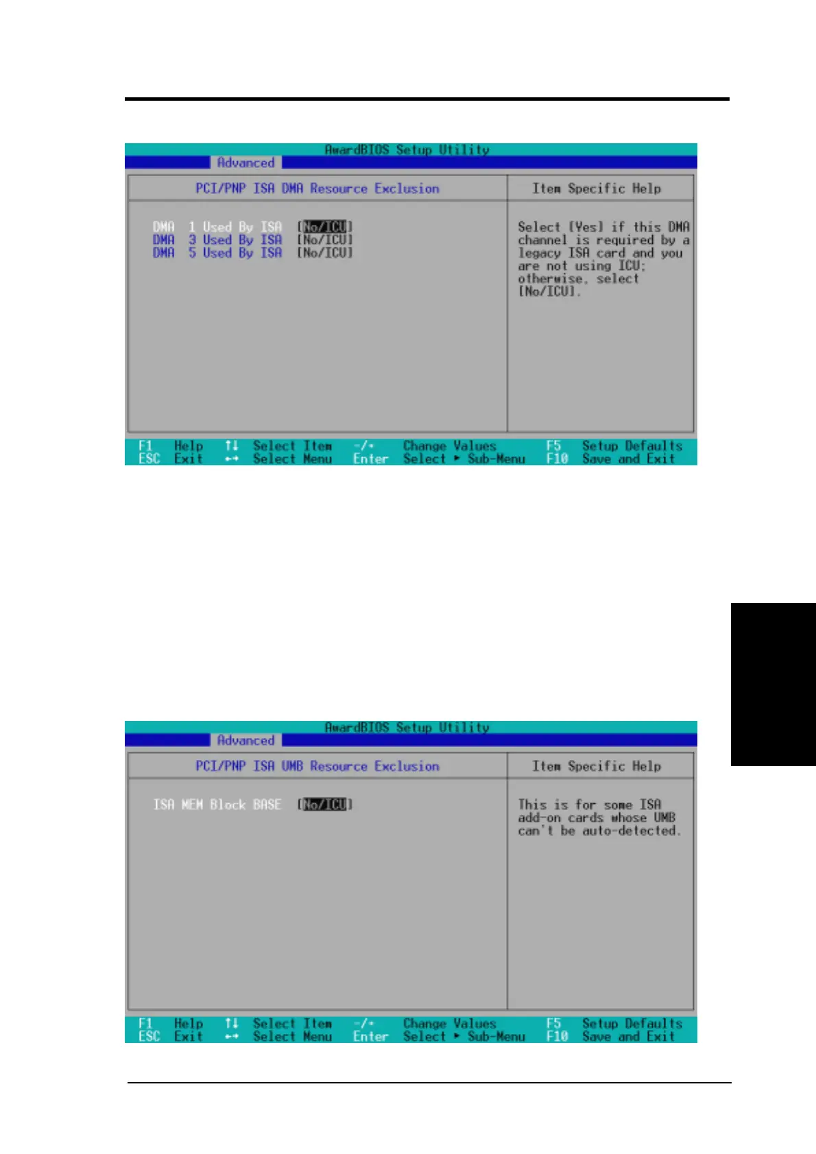 ISA card. Set the DMA field to [Yes] if you install a legacy ISA card that
