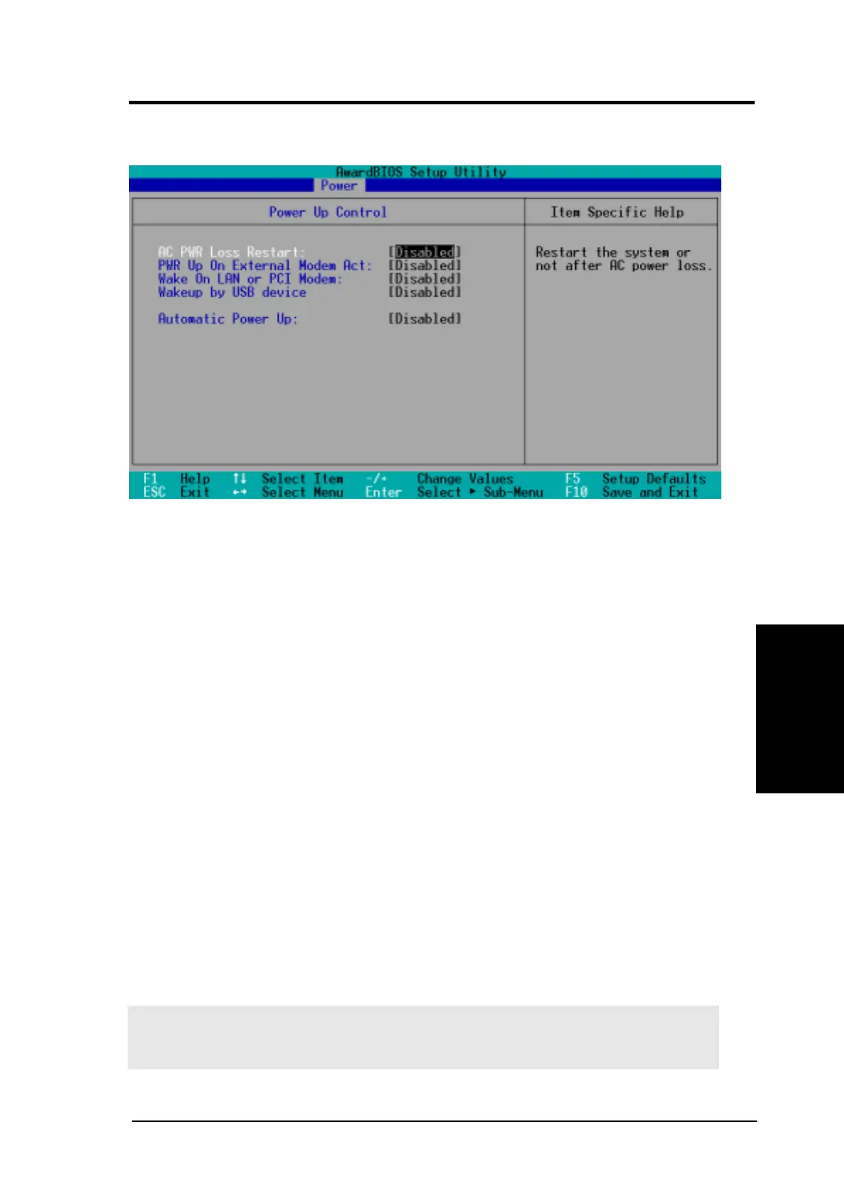 power has been interrupted. [Disabled] leaves your system off and [Enabled]