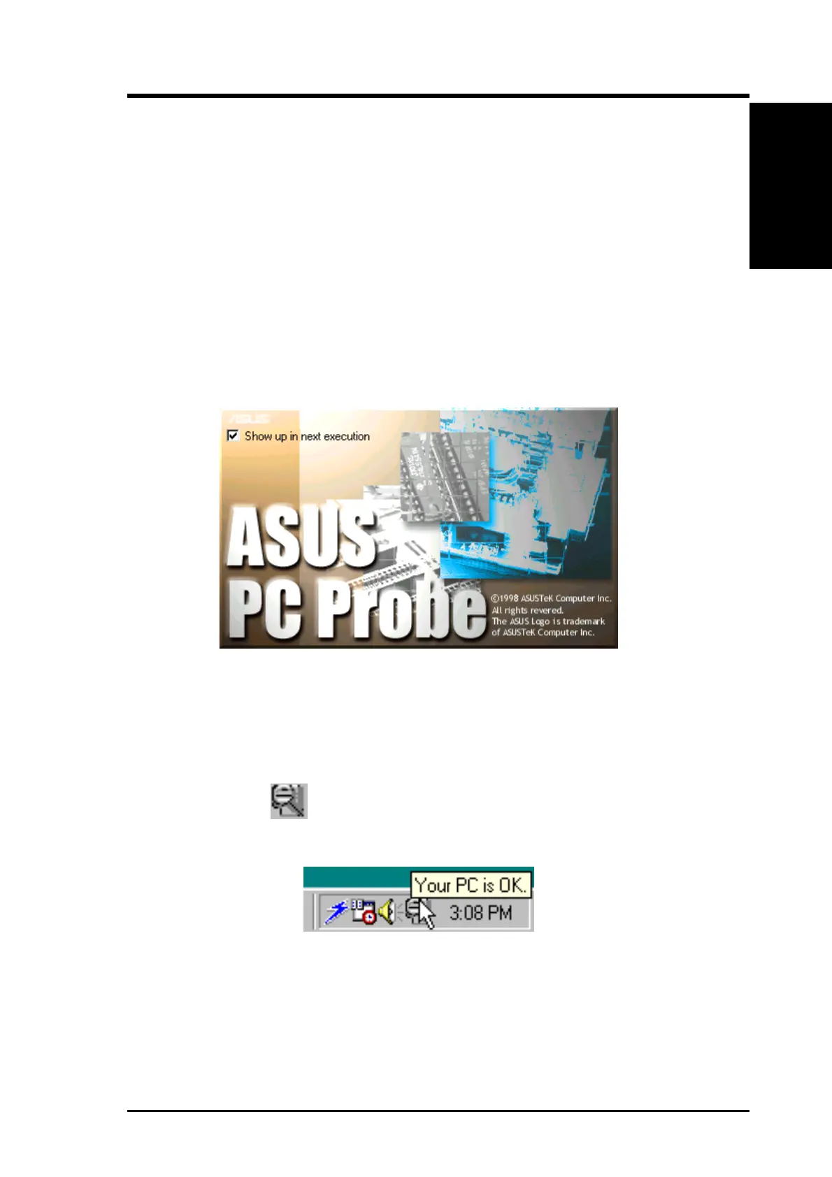 to show the screen again when you open PC Probe or not. To bypass this startup