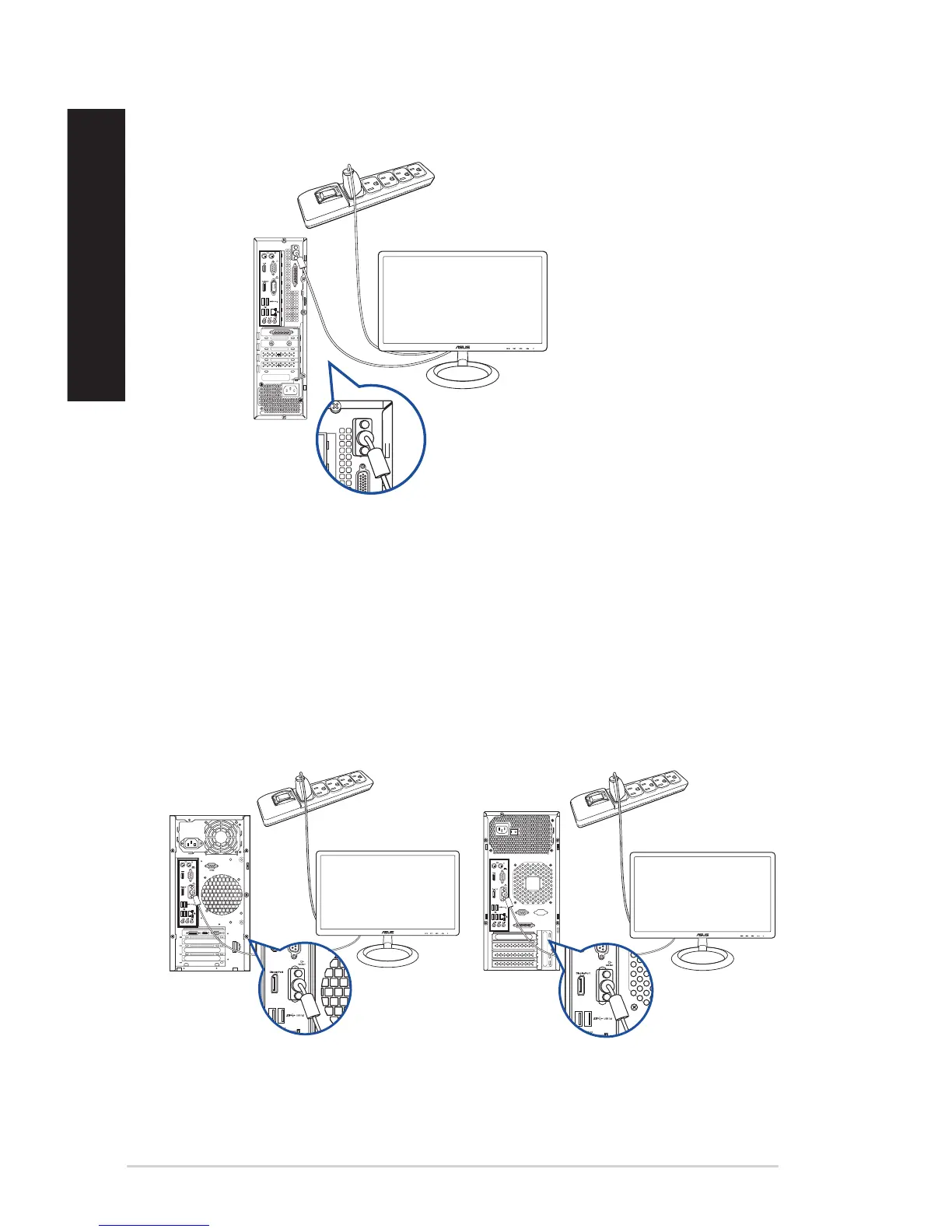 To connect an external monitor using the onboard display output ports: