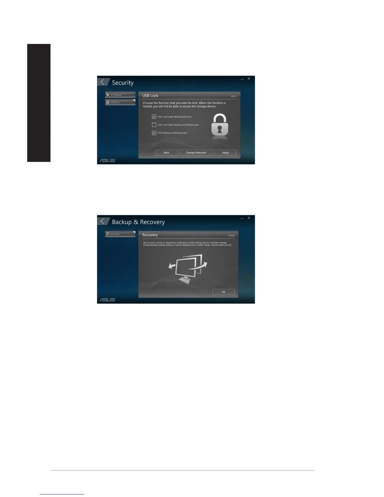 Click Recovery on the main ASUS Manager screen to begin Windows maintenance tasks such as