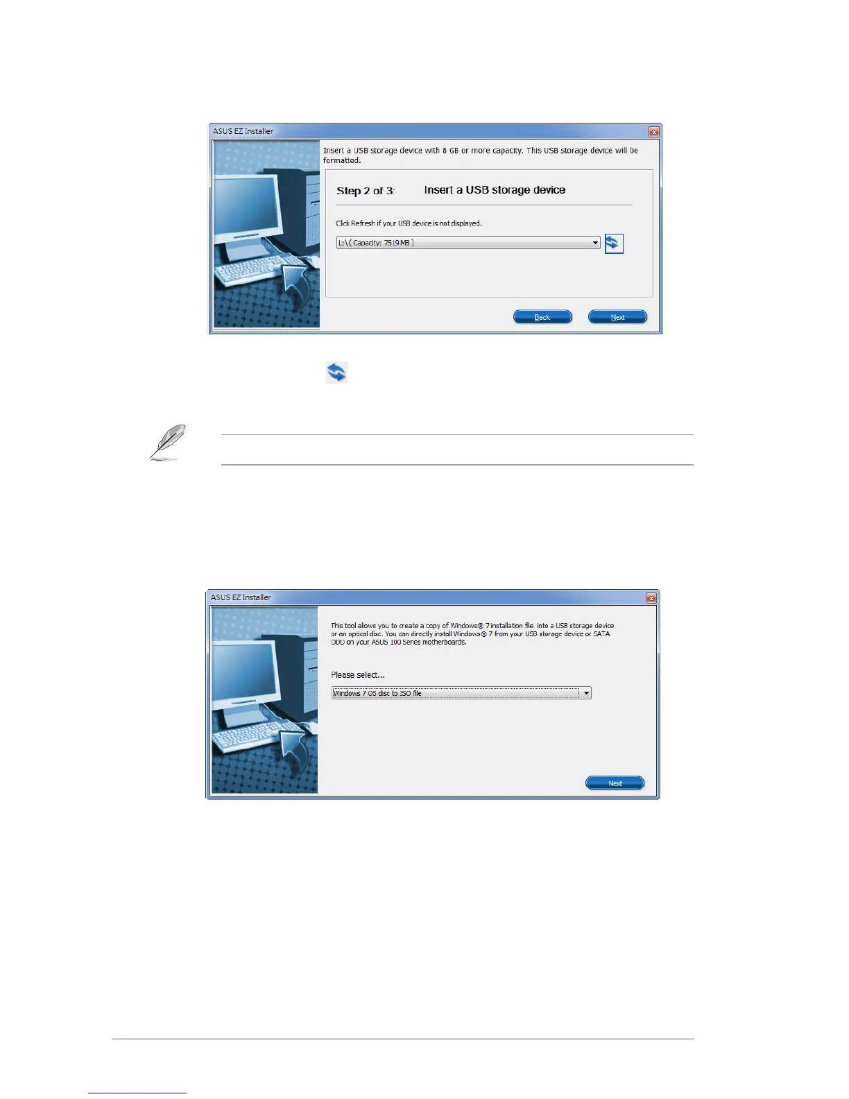e) Clicktherefreshicon if the USB storage device is not displayed. Click Yes to clear the
