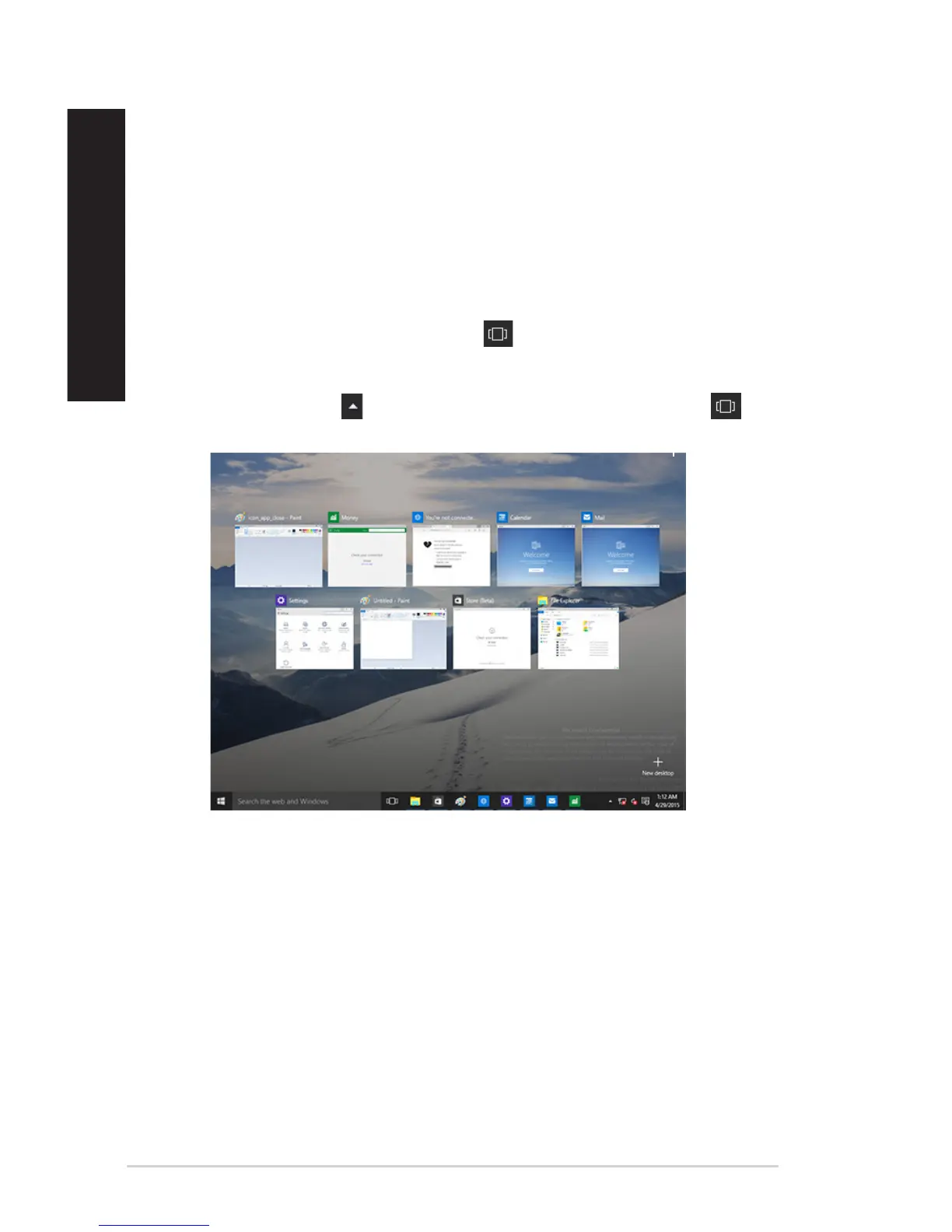 If task view is disabled, click > Show Task View button to display the task view icon .