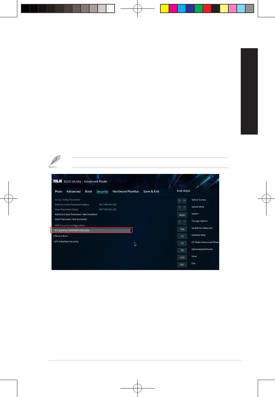 Conguring the HDD security setting using the BIOS