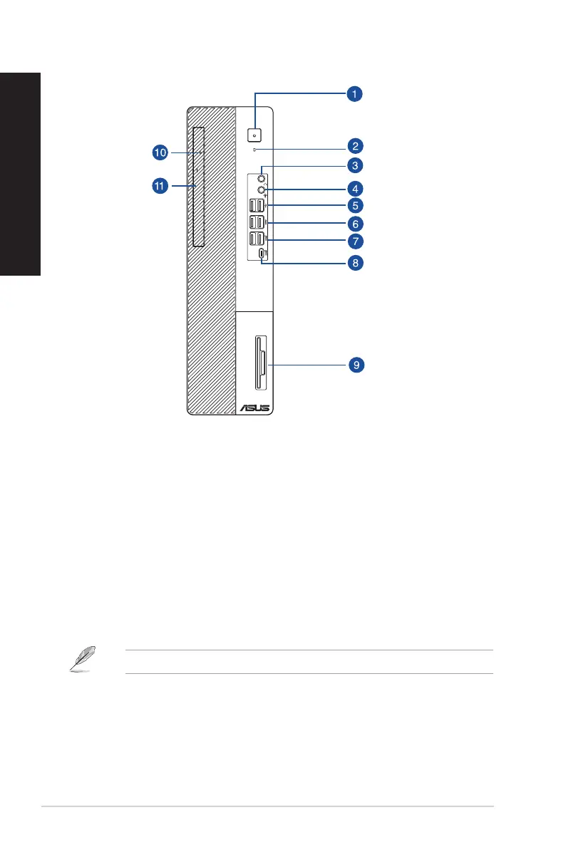 10. Optical disk drive indicator. The LED lights up or blinks to indicate the status of the ODD.