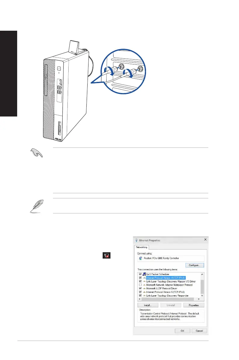 • If your desktop PC comes with a 1x1 network card, the ASUS 2x2 dual band Wi-Fi antenna