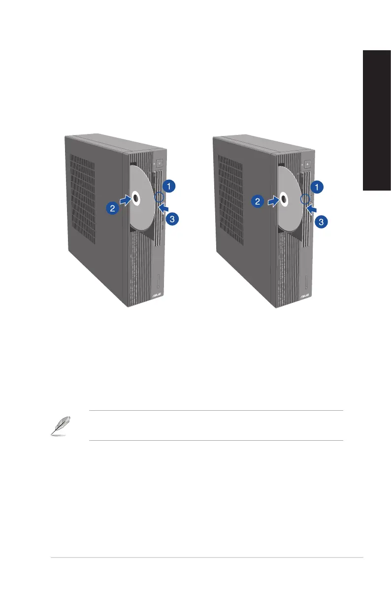 2. Place the disc on the optical drive with the label side outward if the desktop is positioned