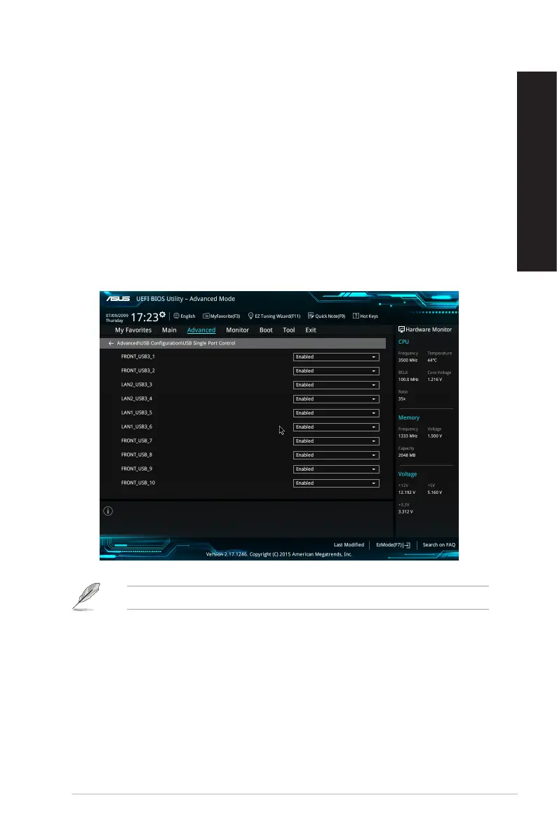 To disable or enable the front and rear USB 2.0, USB 3.0 and USB 3.1 ports: