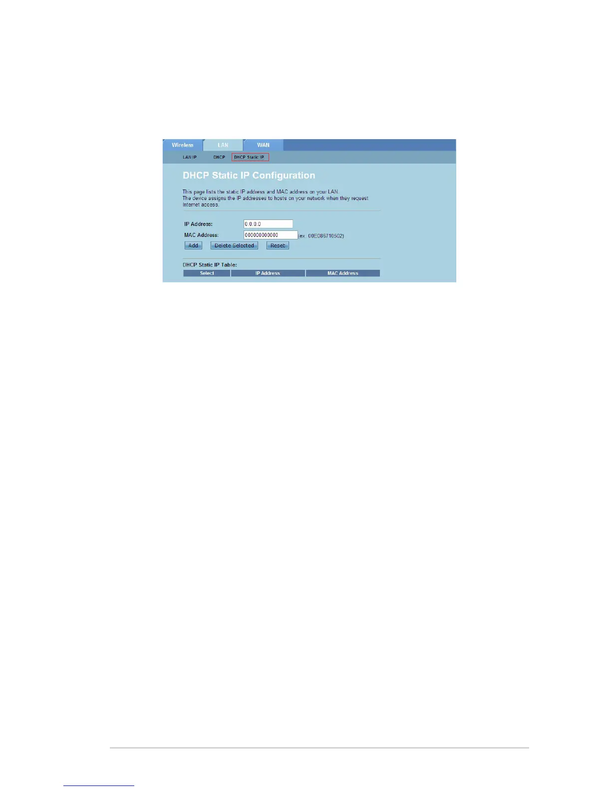 from the DHCP Static IP Table, and click Delete Selected.