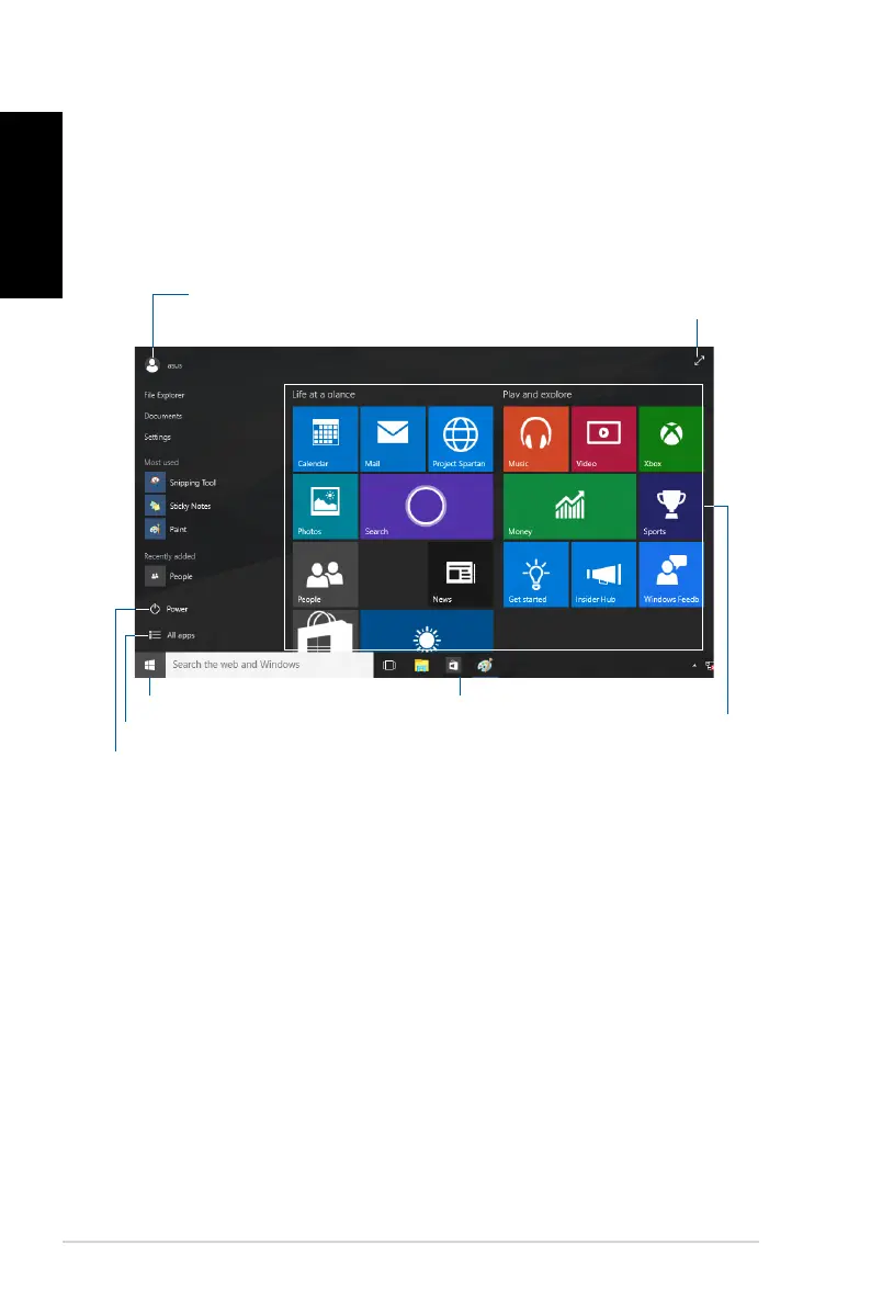 The Windows® 10 User Interface (UI) includes the favorite Start menu