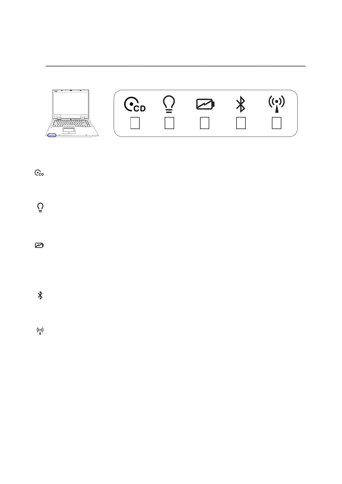 The Bluetooth indicator will light to show that the Notebook PC’s built-in Bluetooth function is acti-