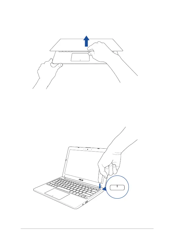 Asus E203 - Lift to Open the Display Panel; Press the Power Button